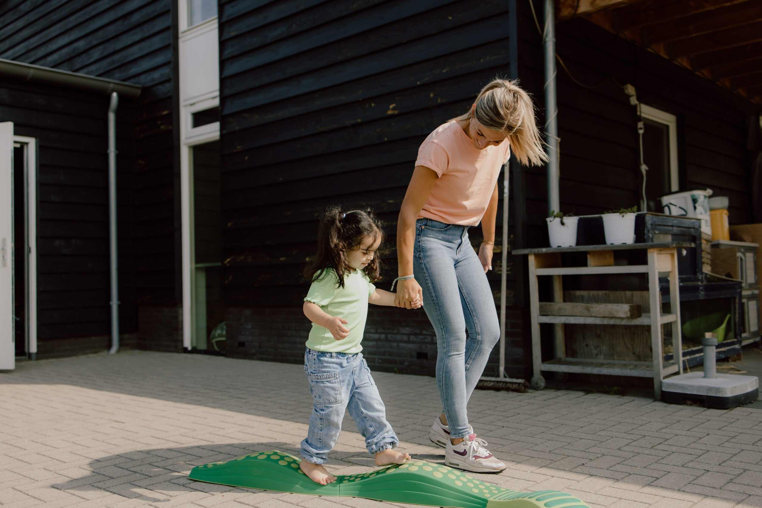 Op deze manier ontwikkelen ze lichamelijke behendigheid en spieren. Daarnaast trainen ze spelenderwijs hun coördinatie, evenwicht, reactie- en uithoudingsvermogen, waardoor de kans op ongevallen kleiner wordt. We bieden de mogelijkheid aan de kinderen, passend bij hun leeftijd en ontwikkelingsniveau, om samen te spelen op ons buitenterrein met kinderen van de reguliere groepen van Kinderdagverblijf Buitenpret.